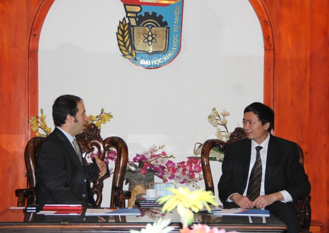 Sáng ngày 24/10/2014, PGS.TS. Nguyễn Văn Nội – Hiệu trưởng Trường Đại học Khoa học Tự nhiên (HUS) đã có buổi tiếp và làm việc với TS. Mark Lorch – Phó Trưởng Khoa Khoa học và Kỹ thuật, Trường Đại học Hull – Vương quốc Anh.