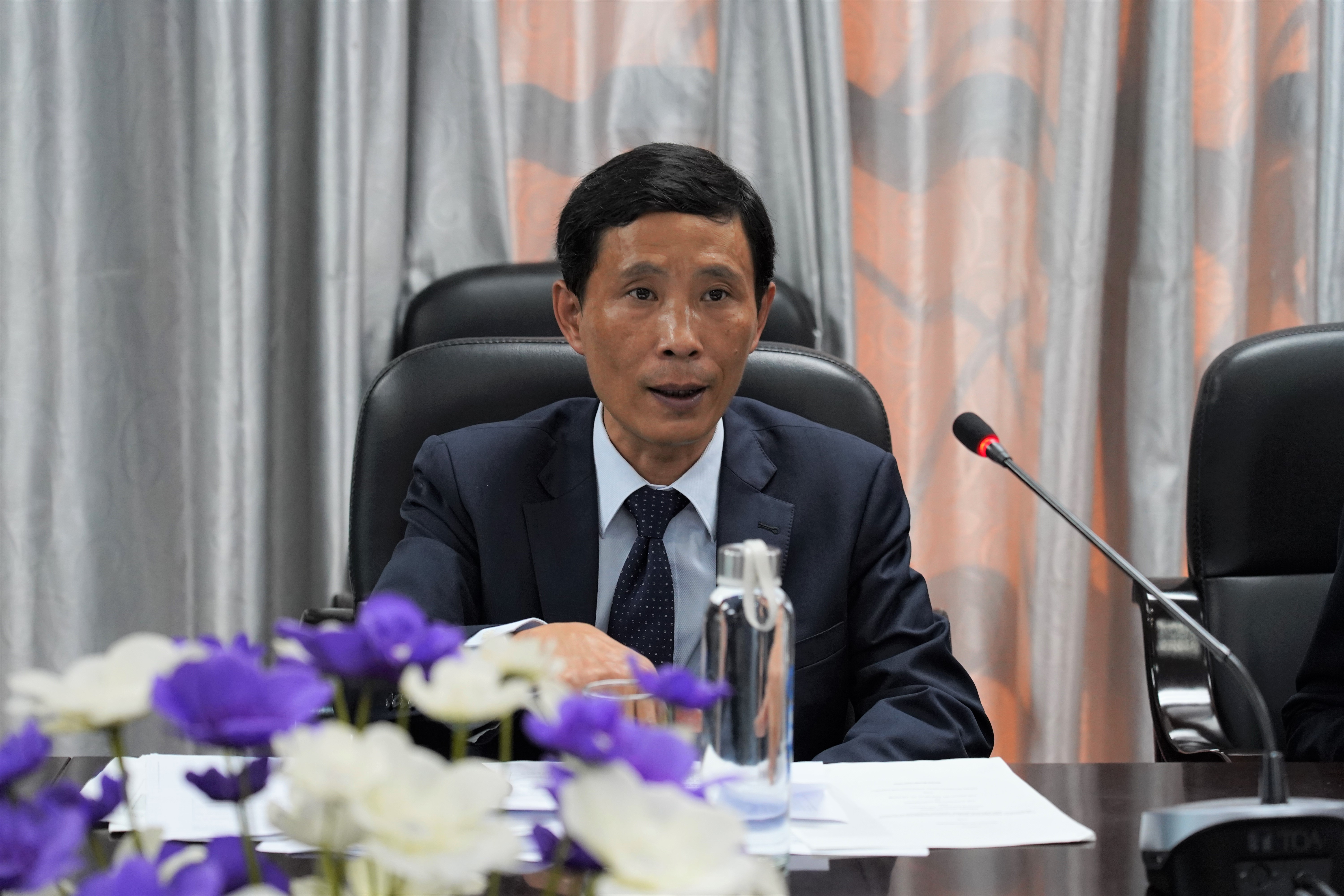 PGS.TS. Ngạc An Bang, Phó Hiệu trưởng Nhà trường trao đổi với đoàn công tác Nhật Bản tại buổi làm việc.