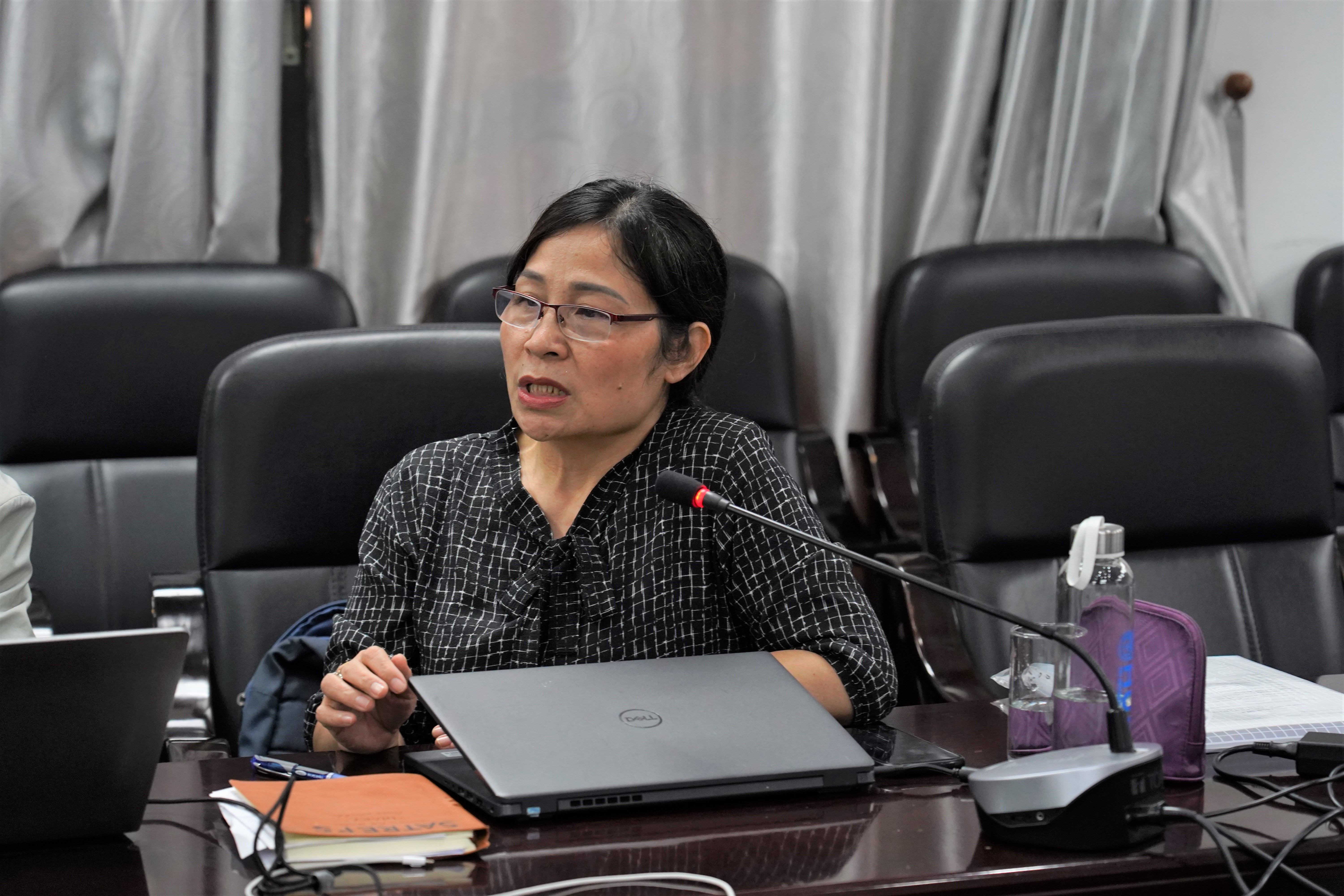 PGS.TS. Nguyễn Thị Hà, Khoa Môi trường, Trường ĐHKHTN giải đáp các thông tin thắc mắc từ phía các chuyên gia Nhật Bản.