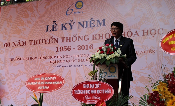 Cũng tại buổi lễ, PGS.TS Nguyễn Văn Nội biểu dương những thành tích mà thầy và trò Khoa Hóa học đã đạt được trong suốt 60 năm xây dựng và phát triển. Đồng thời, Hiệu trưởng cũng mong muốn khoa Hóa học tiếp tục giữ vững chất lượng đào tạo, từng bước xây dựng để trở thành cơ sở nghiên cứu khoa học lớn mạnh, góp phần hoàn thành mục tiêu phấn đấu trở thành Đại học nghiên cứu tiên tiến của Trường Đại học Khoa học Tự nhiên, ĐHQGHN trong thời gian tới.