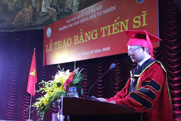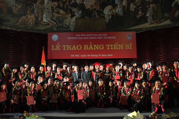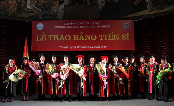 Sáng 28/12/2016, tại Hội trường Ngụy Như Kon Tum, Trường Đại học Khoa học Tự nhiên, ĐHQGHN đã long trọng tổ chức lễ trao bằng Tiến sĩ cho 60 nghiên cứu sinh các ngành đào tạo Toán học, Cơ học, Vật lý, Hóa học, Sinh học, Địa lý, Địa chất, Khí tượng thủy văn - Hải dương và khoa học Môi trường.