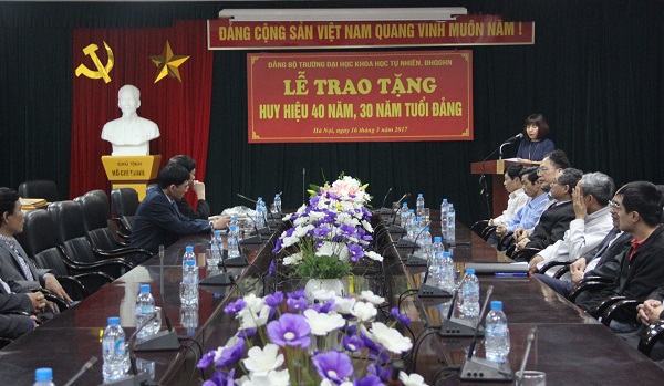 Lễ trao tặng huy hiệu 40 năm, 30 năm tuổi Đảng đã được Đảng bộ trường Đại học Khoa học Tự nhiên, ĐHQGHN tổ chức vào chiều 16/03/2017.