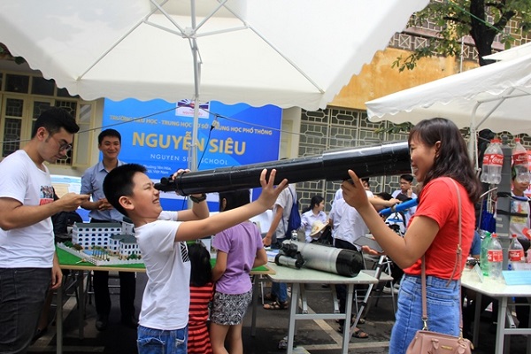 Hàng nghìn học sinh đã đến Ngày hội STEM 2018 do Trường Đại học Khoa học Tự nhiên đăng cai, phối hợp với Báo Khoa học Phát triển, Học viện Sáng tạo S3, Học viện STEM và các đối tác tổ chức tại 334 Nguyễn Trãi ngày 13/5/2018. Hăng say tham gia các hoạt động sáng tạo, trải nghiệm từ sáng sớm đến cuối buổi chiều, em Nguyễn Tùng Dương, học sinh lớp 3 Trường Tiểu học Minh Khai A hồn nhiên chia sẻ: “Con muốn tham gia cả ngày mai, ngày kia,... vì ở đây học được rất nhiều và miễn phí nữa”.