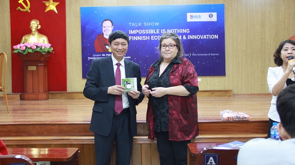 Tại đây, Hiệu trưởng Nguyễn Văn Nội nhấn mạnh: “Qua sự kiện, Trường ĐHKHTN muốn chia sẻ mối quan tâm tới sự nghiệp đổi mới và khởi nghiệp tại Việt Nam và cho sinh viên thấy rằng khoa học cơ bản có thể trở thành ứng dụng nếu chúng ta có tài năng và cam kết cống hiến”. Hiệu trưởng thay mặt Nhà trường gửi lời cảm ơn tới Đại sứ quán Phần Lan, ông Vesterbacka và cộng sự đã cùng mang đến cho sinh viên Việt Nam những trải nghiệm quý giá.