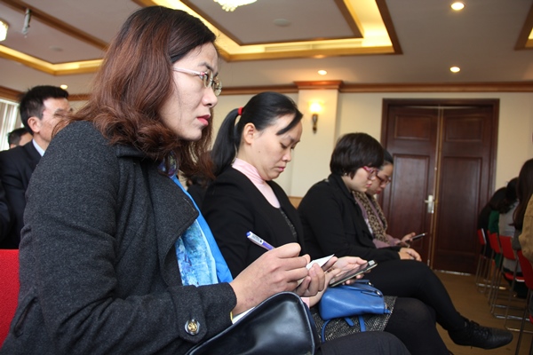 Đại diện chương trình đào tạo chăm chú lắng nghe và ghi chép các nhận xét của đánh giá viên
