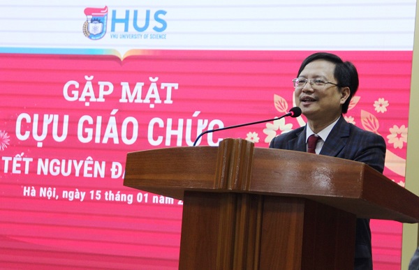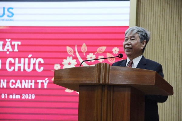 Đại diện Đảng ủy, Ban Giám hiệu, hơn 700 cán bộ, giảng viên, cùng toàn thể học sinh, sinh viên, Phó Hiệu trưởng Vũ Hoàng Linh báo cáo một số thông tin mới của Trường và gửi lời chúc năm mới An khang, Thịnh vượng, Vạn sự như ý tới toàn thể cựu giáo chức. “Tập thể thầy trò Trường ĐHKHTN luôn cố gắng giữ vững truyền thống của Trường Đại học Tổng hợp Hà Nội trước đây, đưa Nhà trường phát triển, phát huy vai trò nòng cột trong nền khoa học cơ bản của nước nhà”, Phó Hiệu trưởng Vũ Hoàng Linh nhấn mạnh.