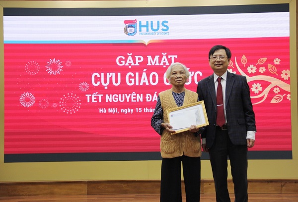PGS.TS. Trần Huy Hổ - Chủ tịch Hội Cựu giáo chức thay mặt toàn thể hội viên cựu giáo chức cảm ơn Ban Giám hiệu, lãnh đạo các đơn vị đã ủng hộ và giúp đỡ cho các chi hội của Hội Cựu giáo chức. PGS.TS. Trần Huy Hổ bày tỏ: “Trường ĐHKHTN không những kế thừa được truyền thống của Trường Đại học Tổng hợp Hà Nội mà còn phát huy được truyền thống đó”. Đại diện Hội Cựu giáo chức, Chủ tịch Hội Cựu giáo chức chúc mừng những thành tựu về đào tạo và nghiên cứu khoa học đã đạt được của Nhà Trường và hy vọng sang năm mới Trường ĐHKHTN sẽ gặt hái được nhiều thành công rực rỡ hơn nữa.