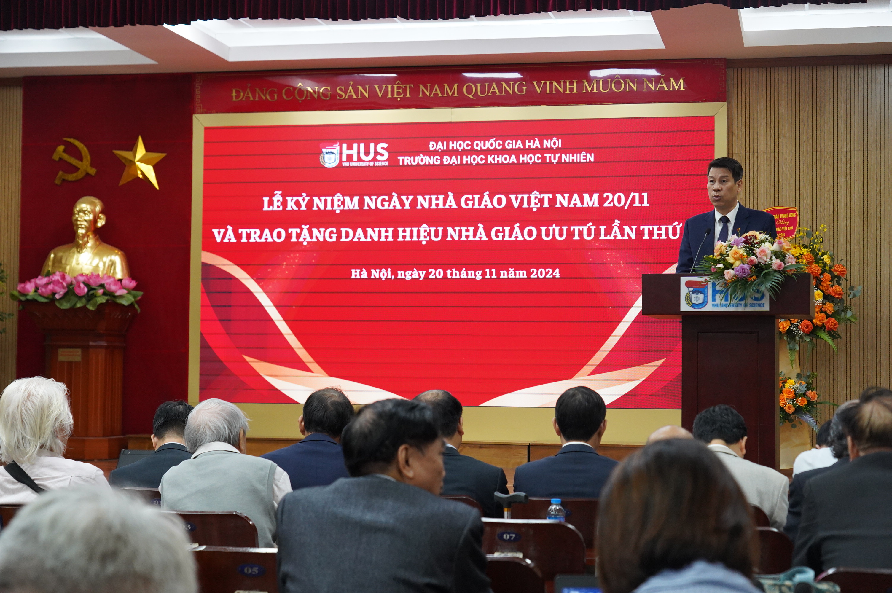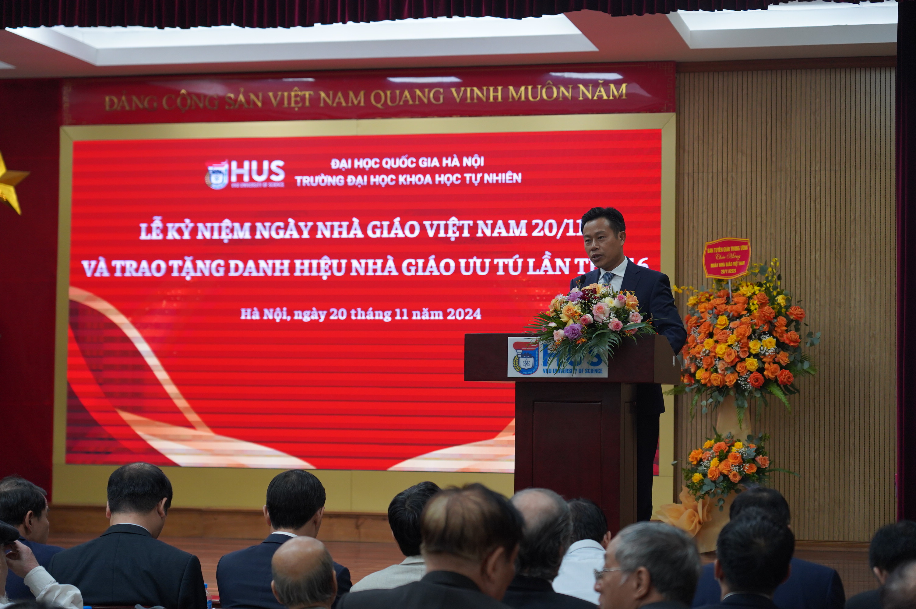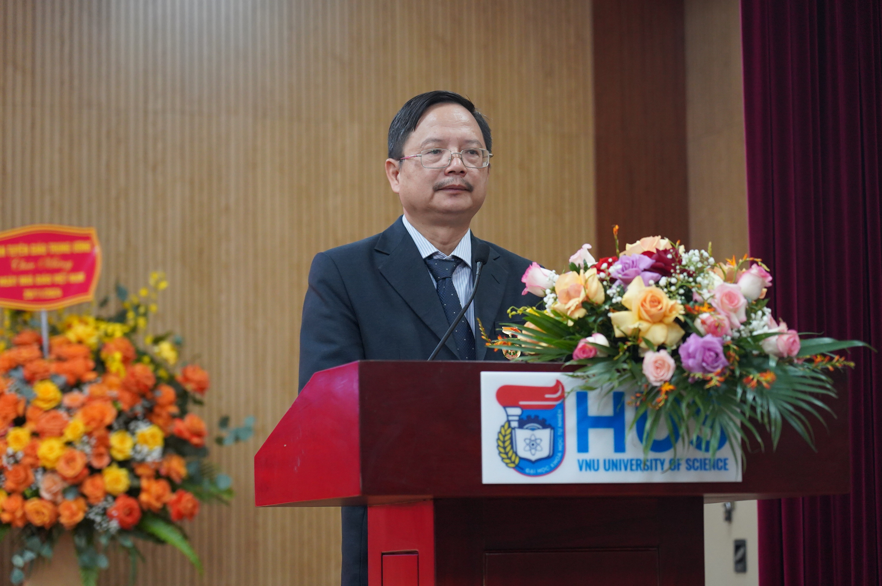 Phát biểu tại sự kiện, GS.TSKH. Vũ Hoàng Linh, Bí thư Đảng uỷ, Hiệu trưởng Trường Đại học Khoa học Tự nhiên đã gửi lời chúc mừng tới các thầy cô giáo, cùng toàn thể cán bộ, viên chức trong nhà trường – những người đã và đang không ngừng nỗ lực, cống hiến cho sự nghiệp giáo dục, đào tạo, góp phần quan trọng vào sự phát triển chung của nhà trường và nền giáo dục của đất nước.