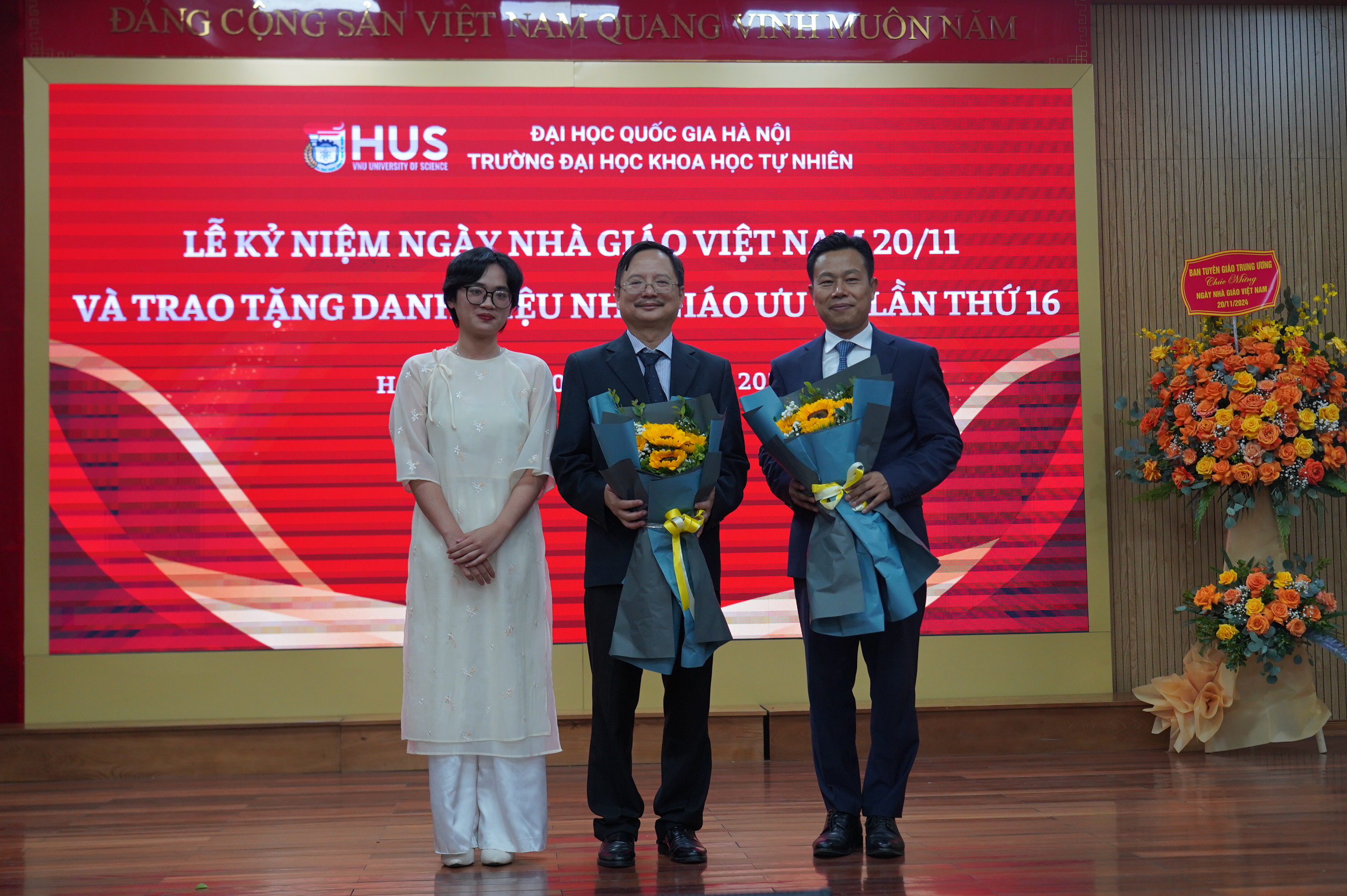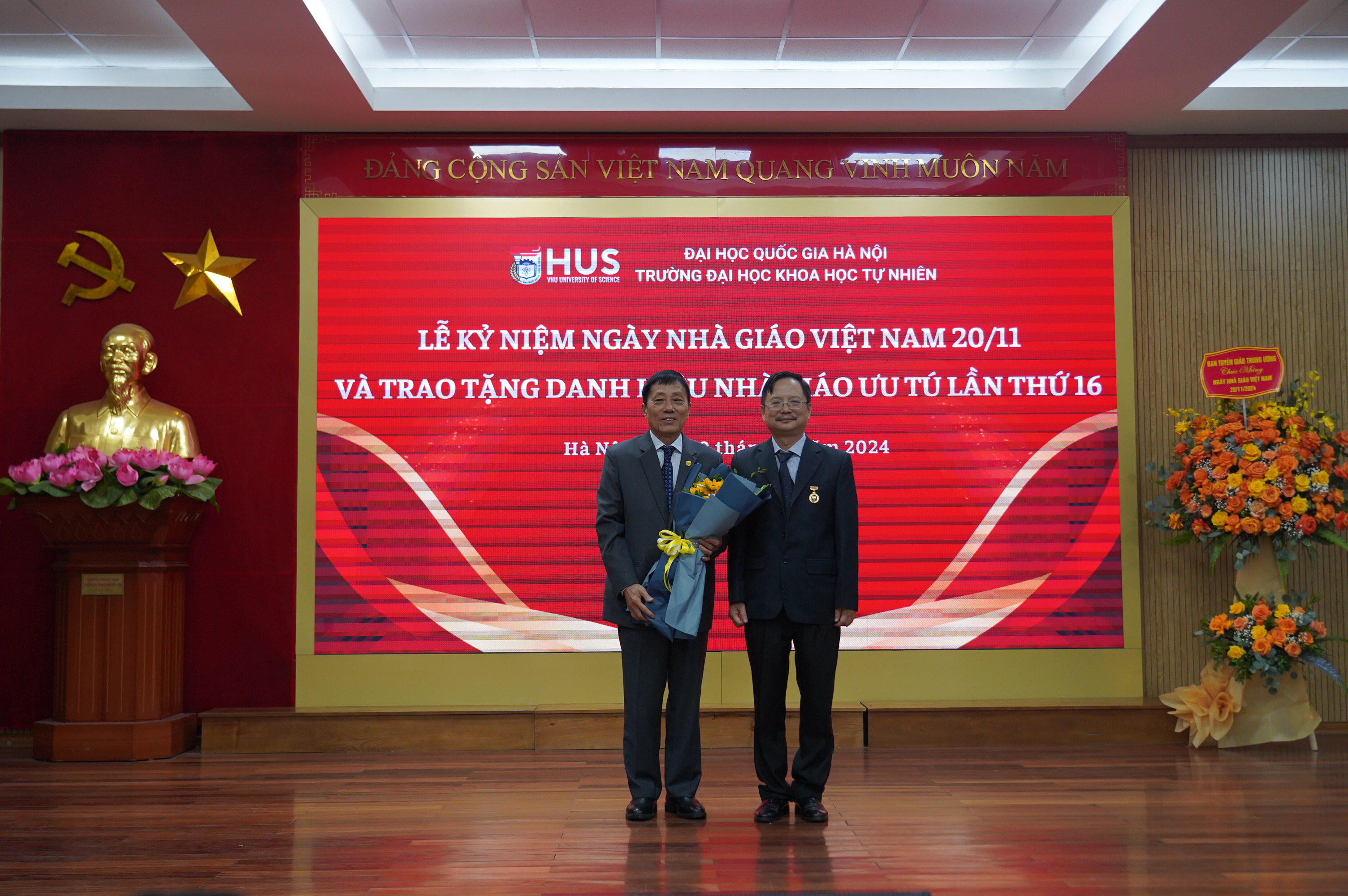 GS.TS. Lê Quân, Bí thư Đảng uỷ, Giám đốc ĐHQGHN trao danh hiệu Nhà giáo ưu tú cho các nhà giáo của Trường ĐHKHTN.