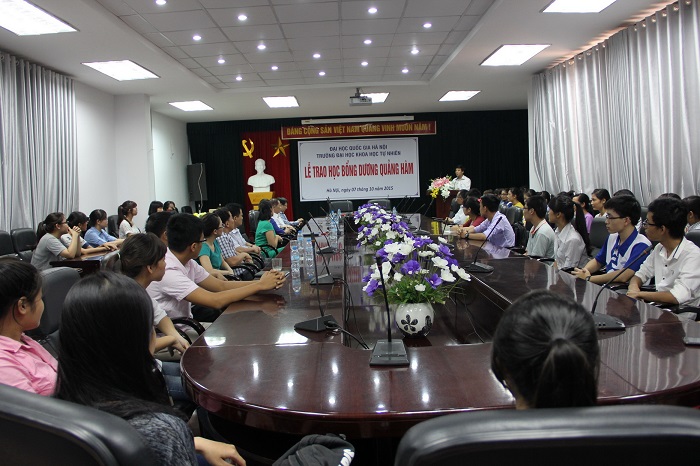 Ngày 7/10/2015 Trường ĐHKHTN tổ chức Lễ ký kết và ra mắt Quỹ Học bổng Dương Quảng Hàm. Tham dự buổi lễ có PGS.TSKH Vũ Hoàng Linh – Phó Hiệu trưởng, đại diện Ban Chủ nhiệm Khoa Môi trường, Khoa Khí tượng – Thủy văn – Hải dương học và các em sinh viên tiêu biểu nhận học bổng.