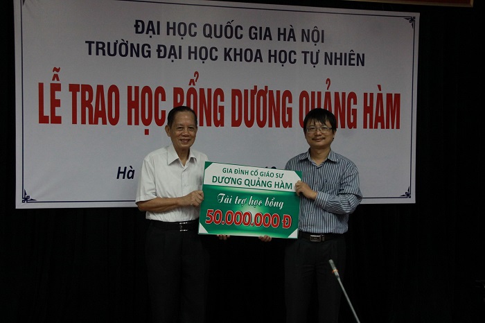 Với mong muốn góp phần trao tặng những suất học bổng ý nghĩa cho các em sinh viên có thành tích tốt trong học tập, có hoàn cảnh khó khăn vươn lên học tốt, gia đình cố GS Dương Quảng Hàm đã phối hợp với Trường ĐHKHTN thành lập Quỹ Học bổng Dương Quảng Hàm. Học bổng này dành cho sinh viên Khoa Môi trường và Khoa Khí tượng – Thủy văn – Hải dương học.
