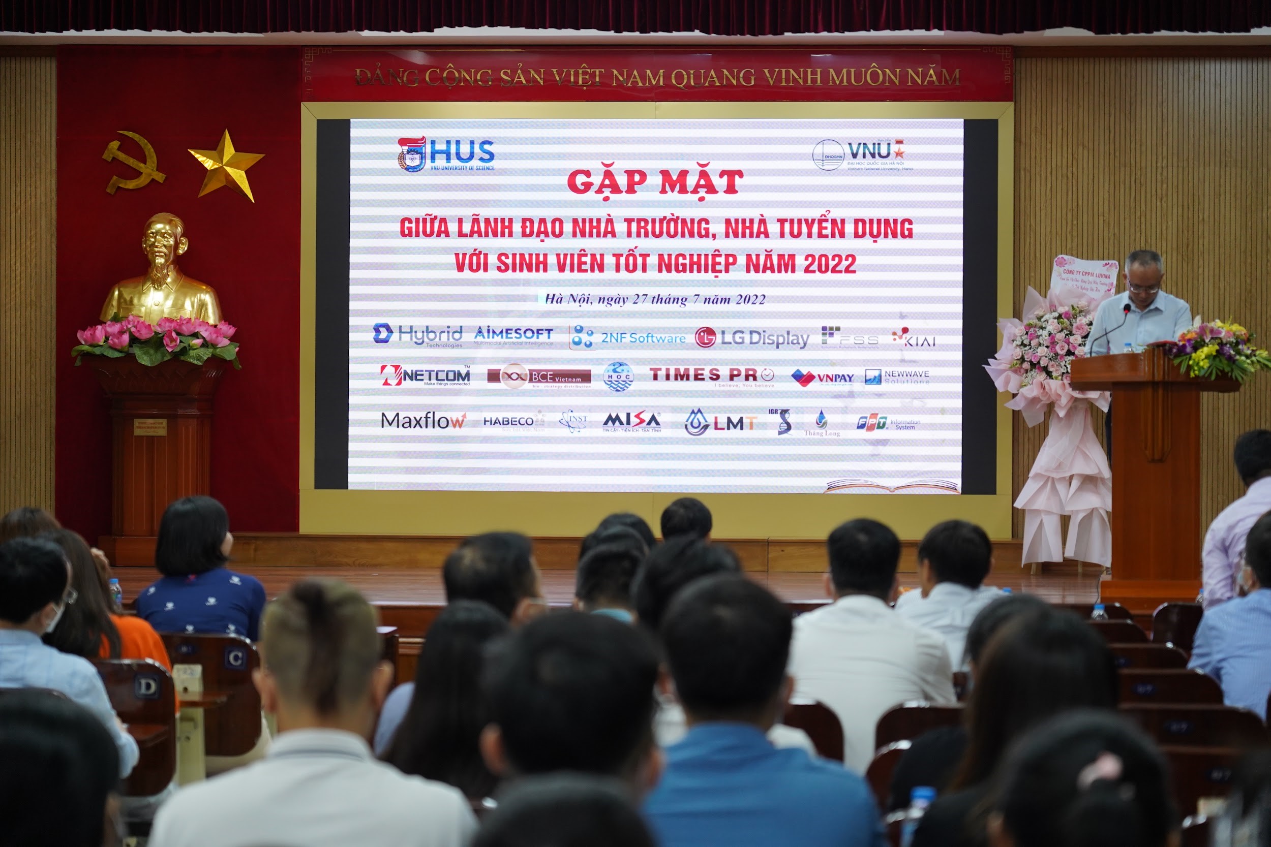 Về dự chương trình, có sự hiện diện của PGS.TS. Ngạc An Bang - Phó Hiệu trưởng Nhà trường, lãnh đạo các phòng ban chức năng và các Khoa, đại diện các doanh nghiệp, nhà tuyển dụng.