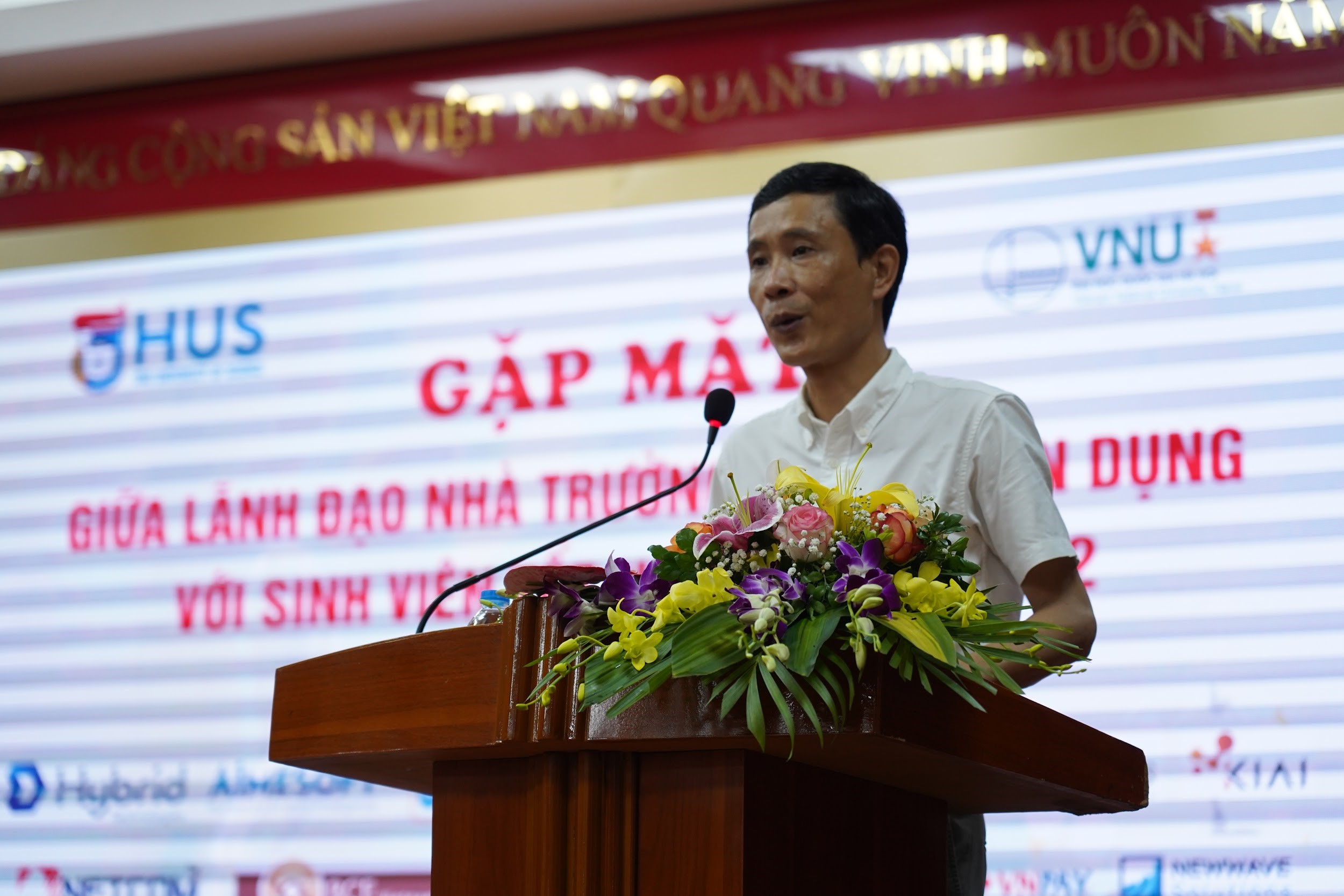 Phát biểu tại buổi gặp mặt, PGS.TS. Ngạc An Bang trân trọng những nỗ lực của mỗi bạn sinh viên trong suốt quá trình học tập đã qua. Đặc biệt do những tác động từ đại dịch Covid-19 các bạn sinh viên càng phải cố gắng nhiều hơn nữa để vượt qua những khó khăn, thử thách. Thay mặt lãnh đạo Nhà trường, PGS.TS. Ngạc An Bang gửi lời chúc mừng các bạn sinh viên đã đạt được những thành quả từ những nỗ lực, cố gắng của bản thân trong suốt thời gian qua.