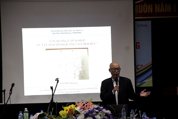 Ngày 18/4/2018, tại Trường Đại học Khoa học Tự nhiên (ĐHKHTN) đã diễn ra buổi giao lưu “Con đường lập nghiệp của TS. Đào Minh Quang tại CHLB Đức”. Tại đây, TS. Đào Minh Quang - Chủ tịch Quỹ Đào Minh Quang đã chia sẻ kinh nghiệm, tư vấn và giải đáp thắc mắc cho các bạn sinh viên năm cuối có ý tưởng trong khởi nghiệp và lập nghiệp.
