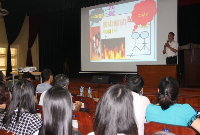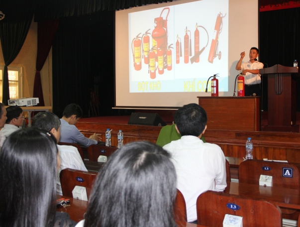 Thực hiện công văn số 221/BGDĐT-VP về tăng cường công tác phòng cháy, chữa cháy và cứu nạn, cứu hộ của Bộ Giáo dục Đào tạo; Công văn số 1006/PCCC-P6 về việc tuyên truyền phòng cháy, chữa cháy và cứu nạn, cứu hộ của Tổng Cục Cảnh sát QLHC về TTATXH – Cục Cảnh sát PCCC và CNCH; Công văn số 2836/ĐHQGHN-VP về tăng cường công tác PCCC và phòng chống lụt bão, bảo vệ an toàn hồ sơ, tài liệu, ngày 21/10/2014, Trường ĐHKHTN đã tổ chức tập huấn về PCCC cho toàn thể cán bộ viên chức Nhà trường.