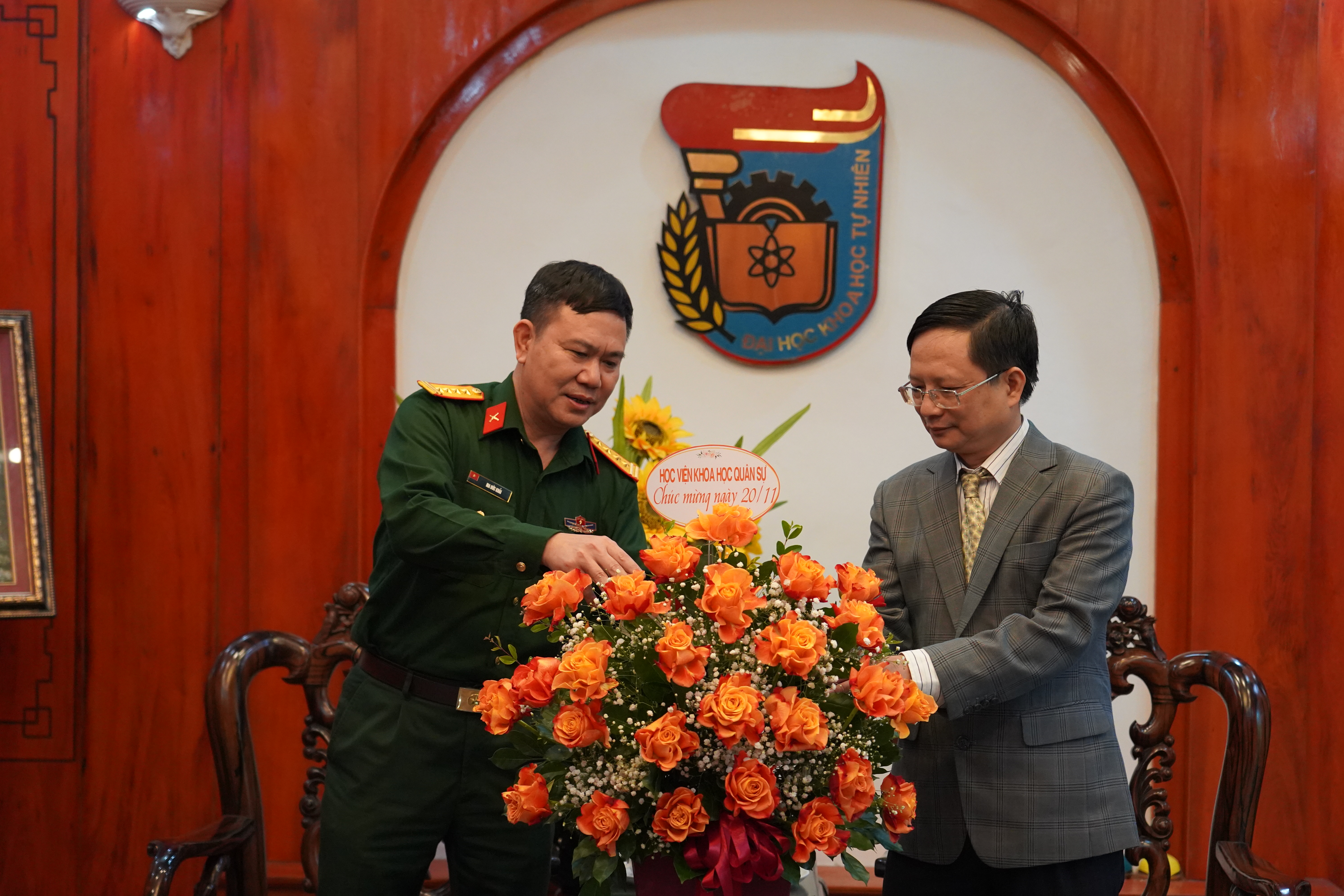 Đại diện lãnh đạo Học viện Khoa học Quân sự tới thăm Nhà trường.