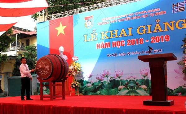 Hiệu trưởng Trường THPT chuyên Khoa học Tự nhiên đánh trống khai giảng năm học 2018-2019