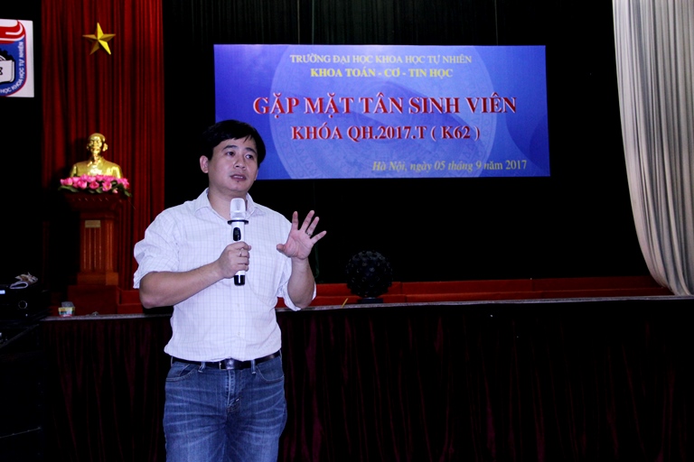 Tham dự buổi gặp mặt còn có TS. Trương Thanh Tú - Phó Trưởng phòng Đào tạo, đại diện lãnh đạo Nhà trường và Ban Lãnh đạo Khoa Toán - Cơ - Tin học. TS. Trương Thanh Tú dặn dò tân sinh viên cố gắng tận dụng sự hỗ trợ của thầy cô giáo trong khoa và trường để hoà nhập nhanh nhất phong cách học tập, làm việc tại đại học. Phó Trưởng Phòng Đào tạo cho biết: "Chúng tôi sẽ sát cánh cùng các bạn trong quá trình học tập. Khi gặp khó khăn, các bạn có thể gặp bộ phận hỗ trợ sinh viên của Khoa và Phòng Đào tạo của trường để được giúp đỡ".