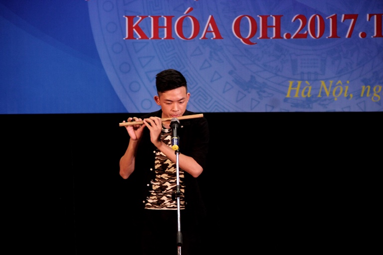 Tiết mục thổi sáo của tân sinh viên Vũ Văn Kiên
